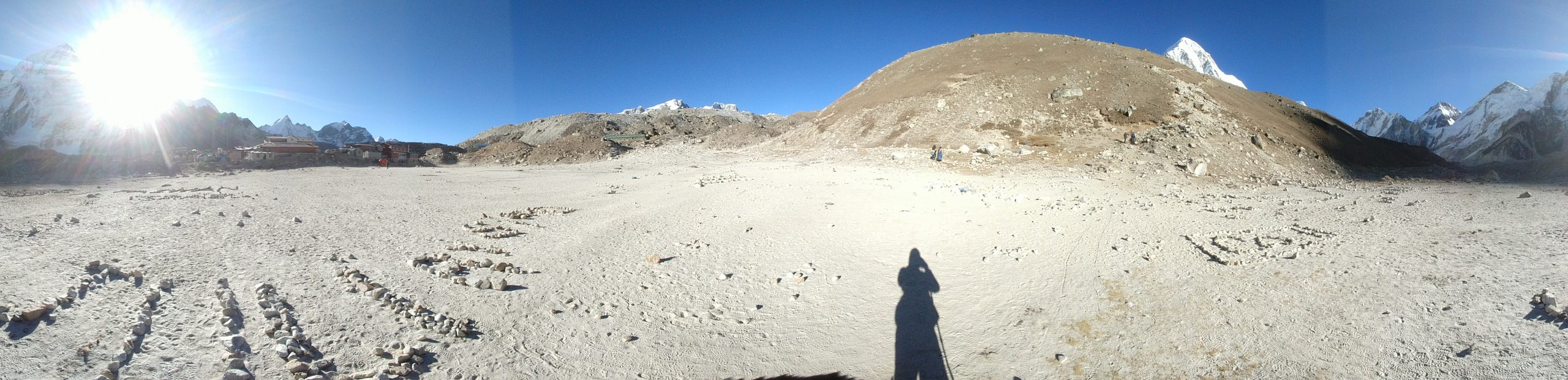 カラパタール下山直後、ゴラクシェプの広場からのパノラマ。