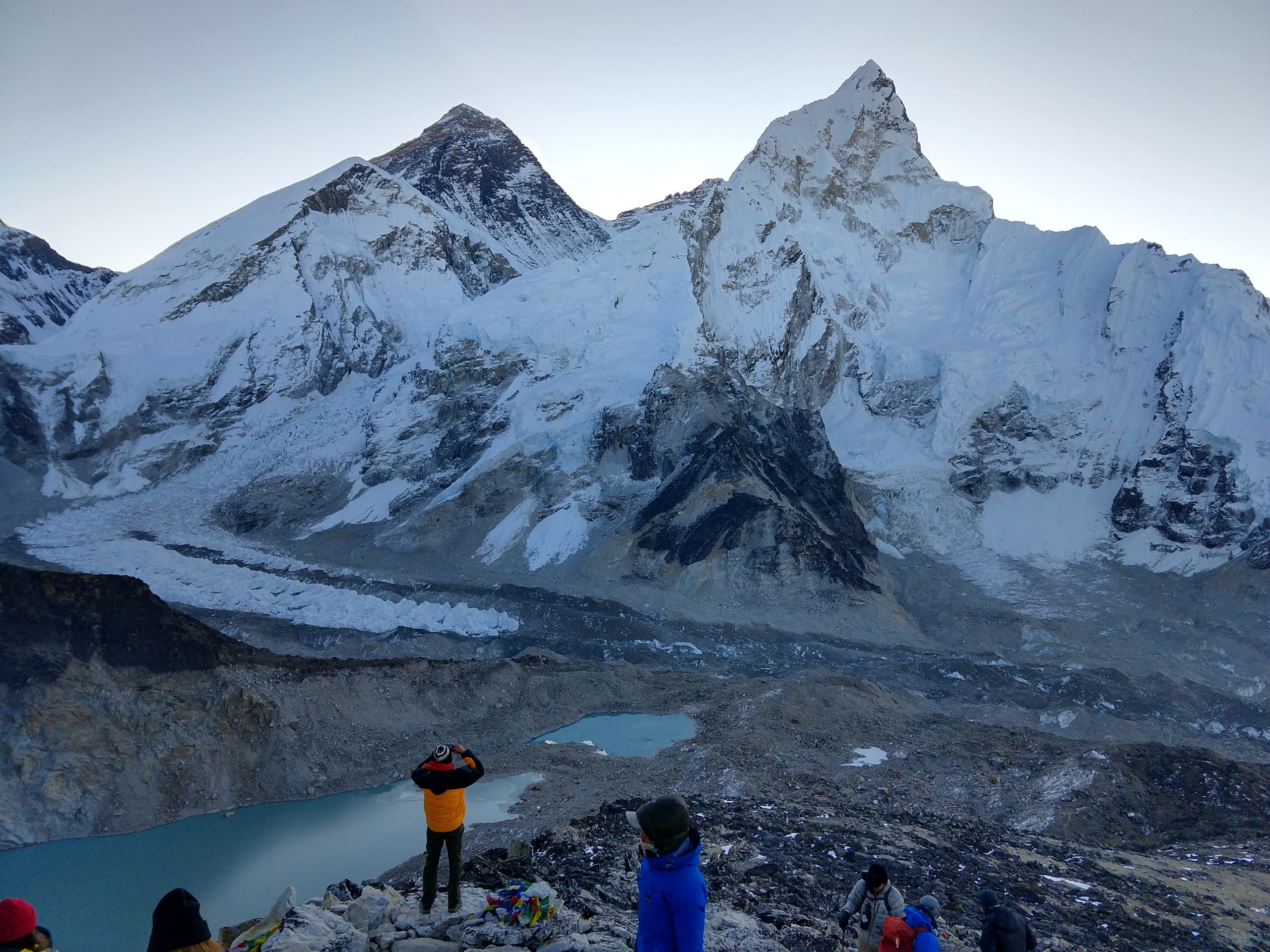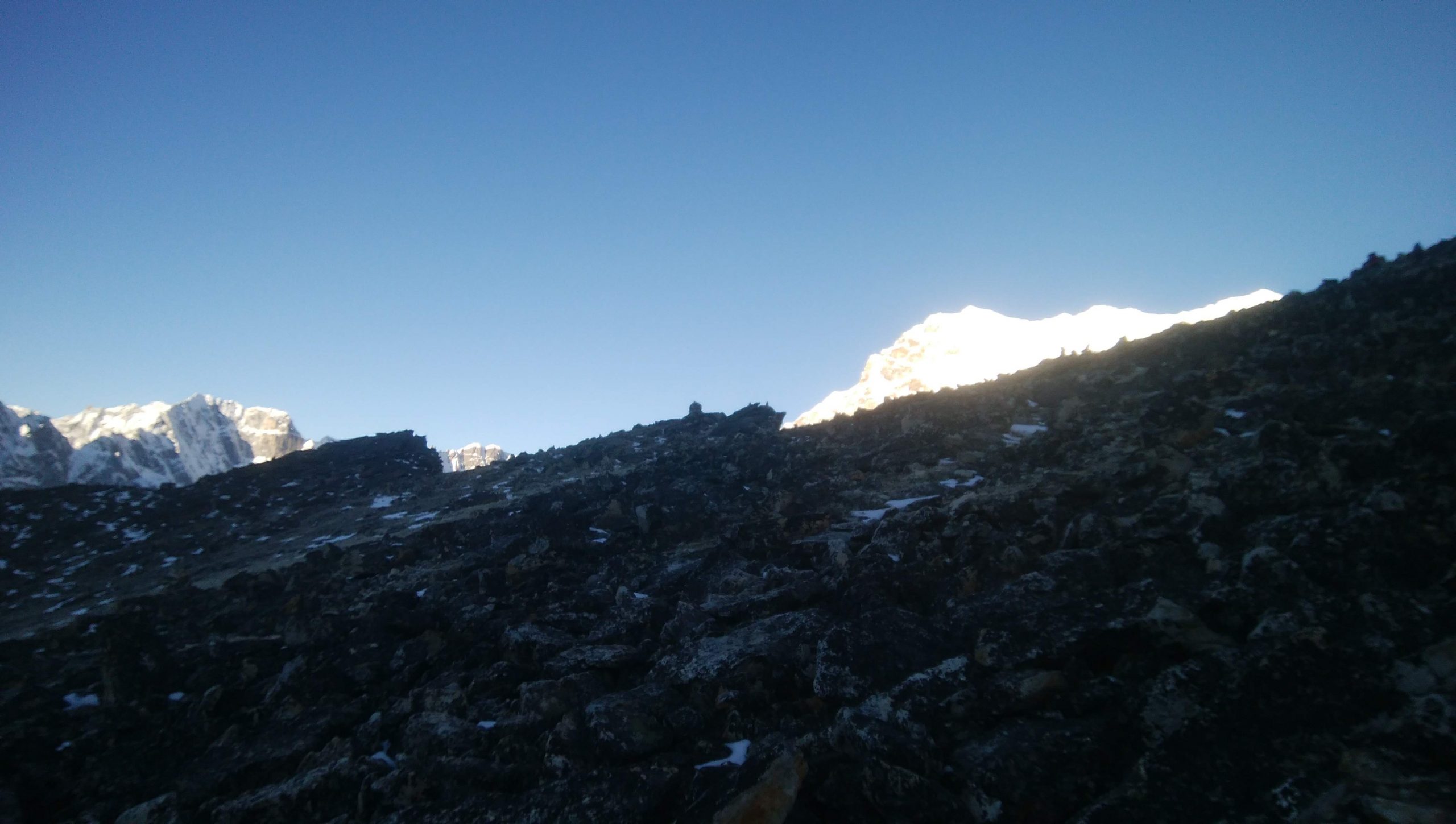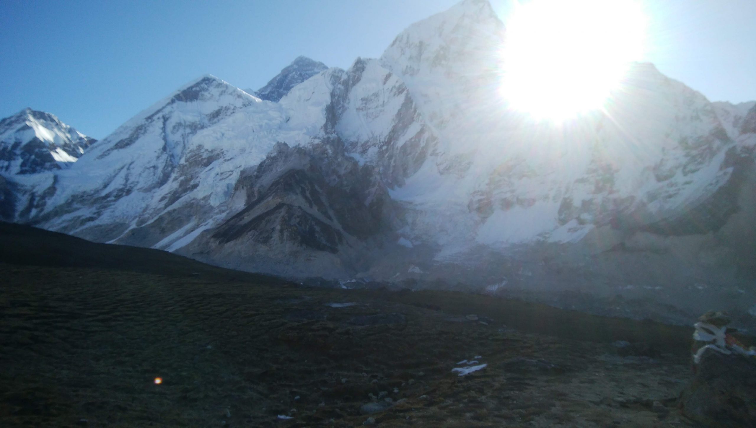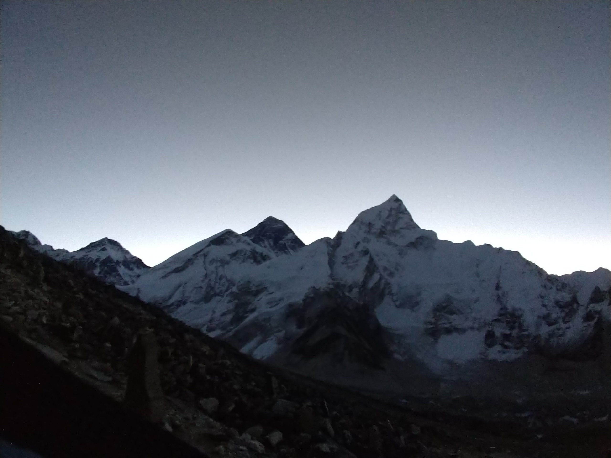ふと明るくなったほうに目をやるとヌプツェの隣にはっきりと、これまではその姿をしっかりと見ることができなかったエベレストの姿をこの目でとらえることができました。