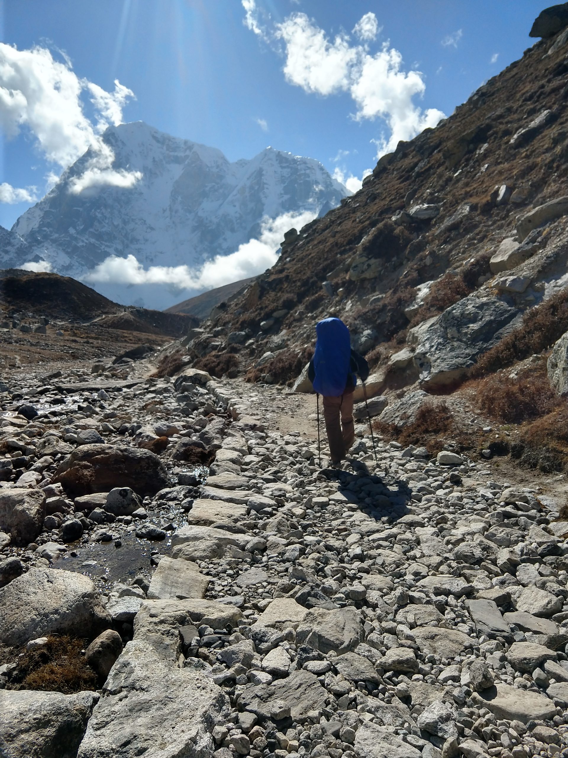 それにつれて眺望も素晴らしくなっていきます。後ろにはアマダブラムが見えます。