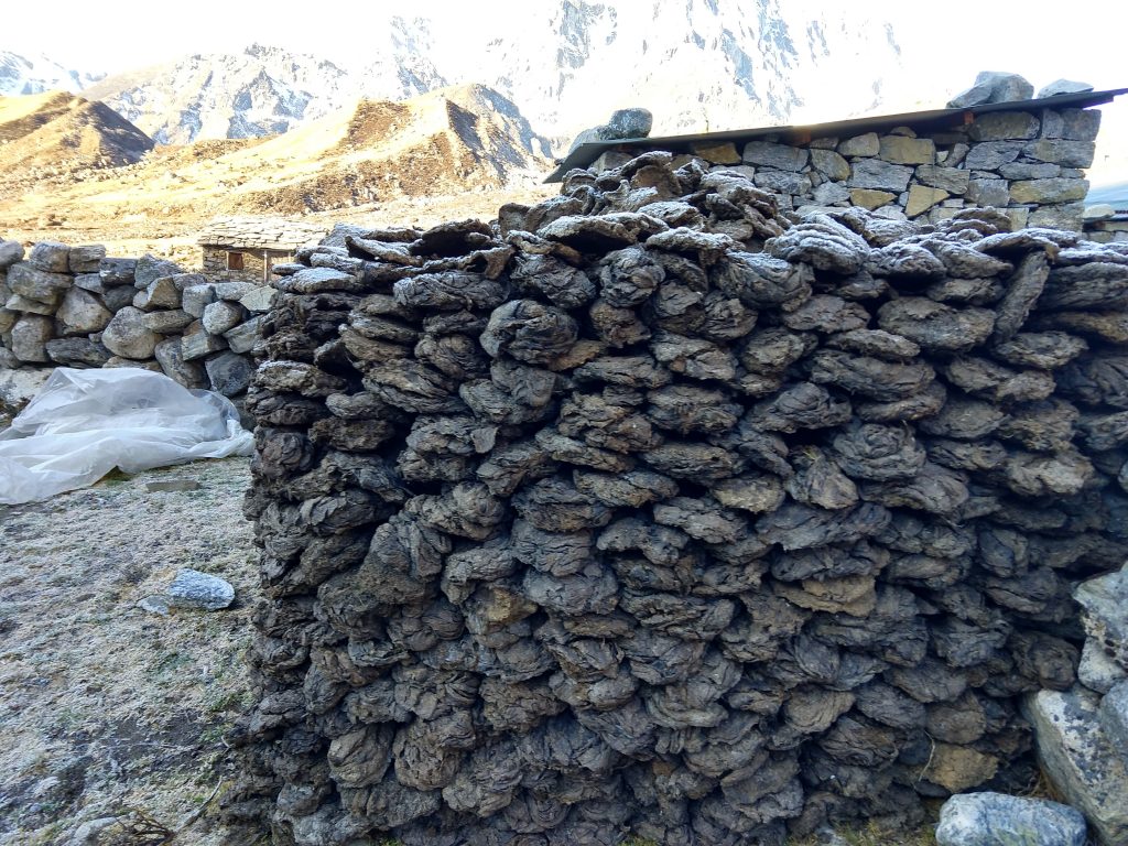 路地裏を駆け抜けた時にあった乾燥ヤク糞。燃料用です。
