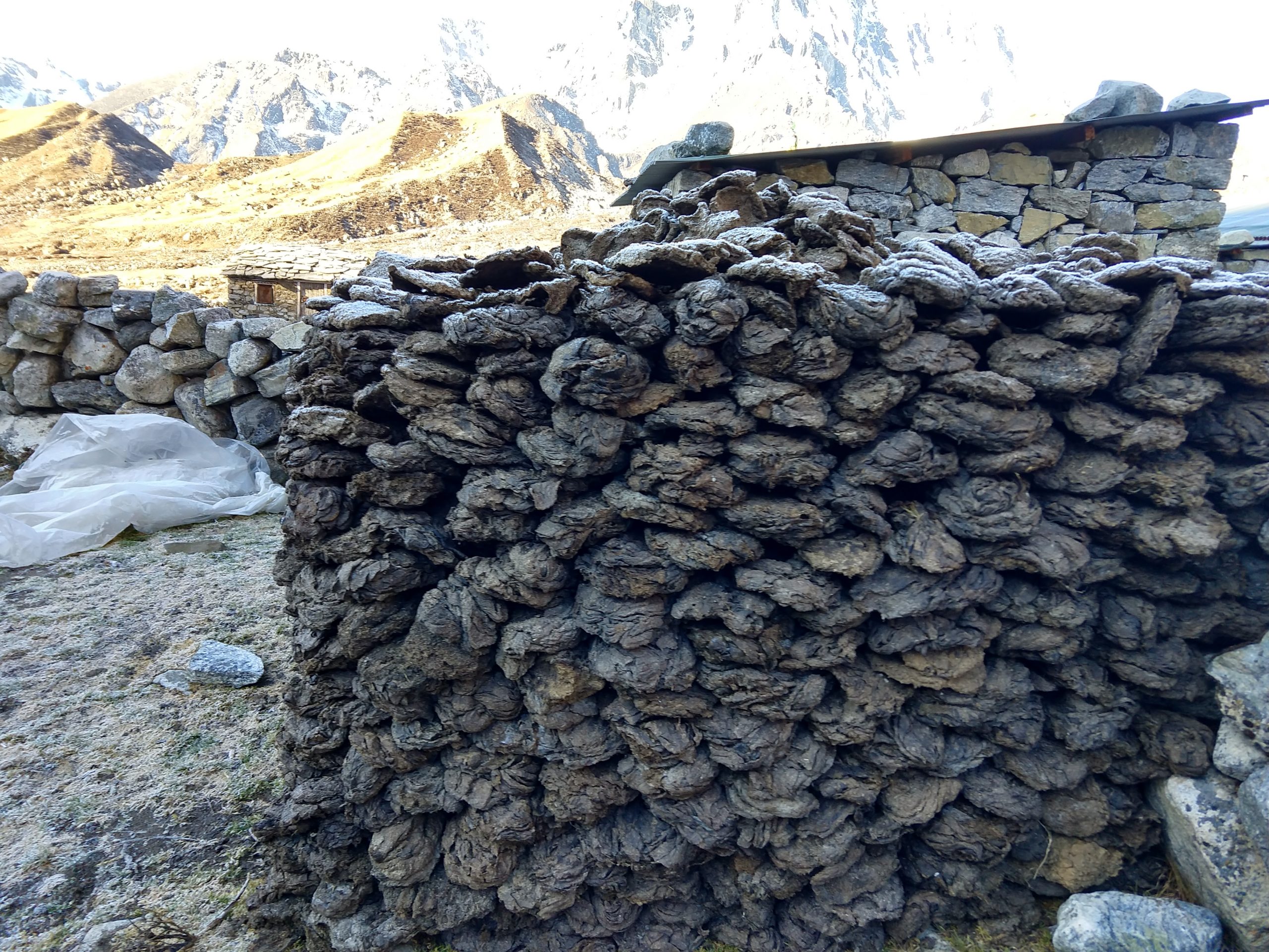 路地裏を駆け抜けた時にあった乾燥ヤク糞。燃料用です。
