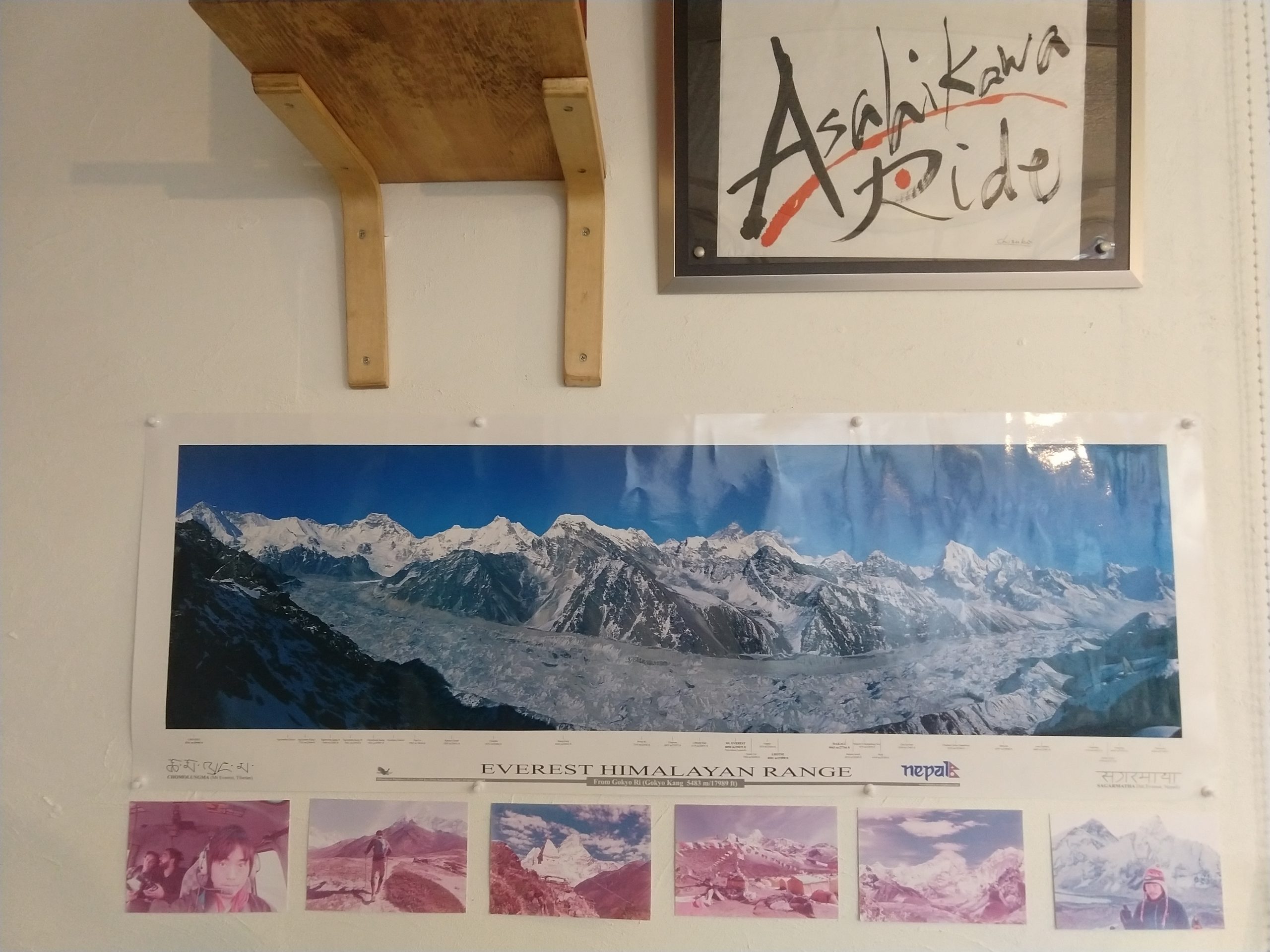 臥薪嘗胆!行くことができなかったゴーキョ・リからのヒマラヤビューのポスターをゲストハウスの壁に貼り、いつかこの景色を見てやるという思いを忘れないようにしています。
