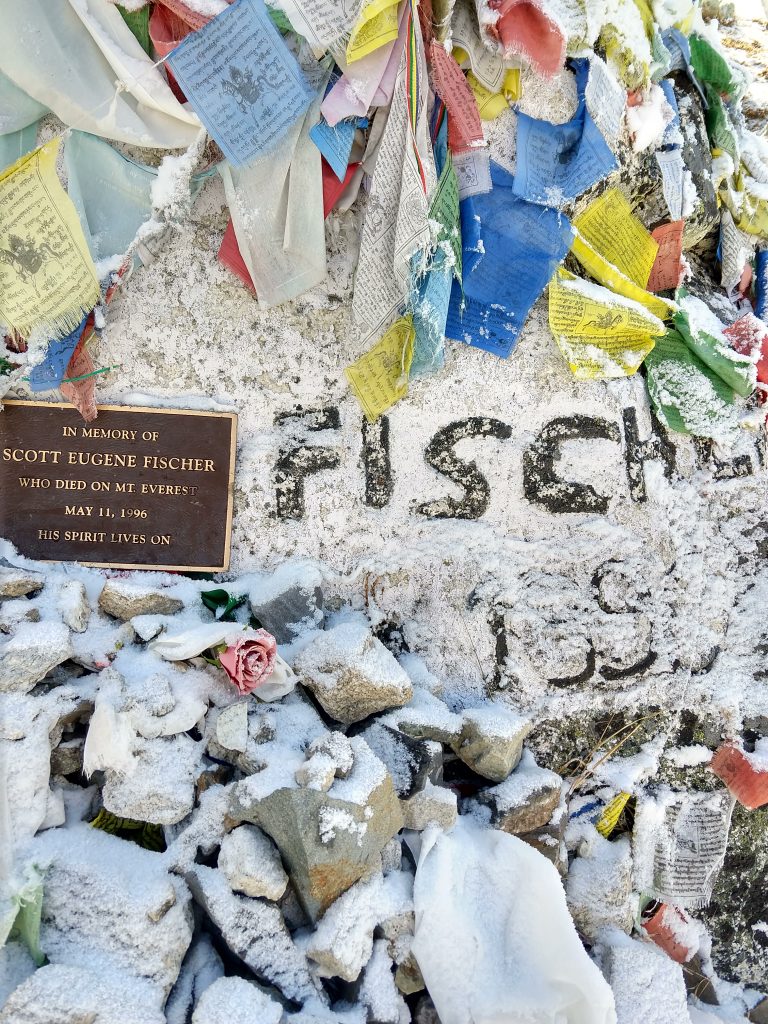 その中に1996年のエベレスト大量遭難事故で亡くなったアドベンチャーコンサルタンツ社のロブ・ホールとマウンテンマッドネス社のスコット・フィッシャーの慰霊碑を見つけました。