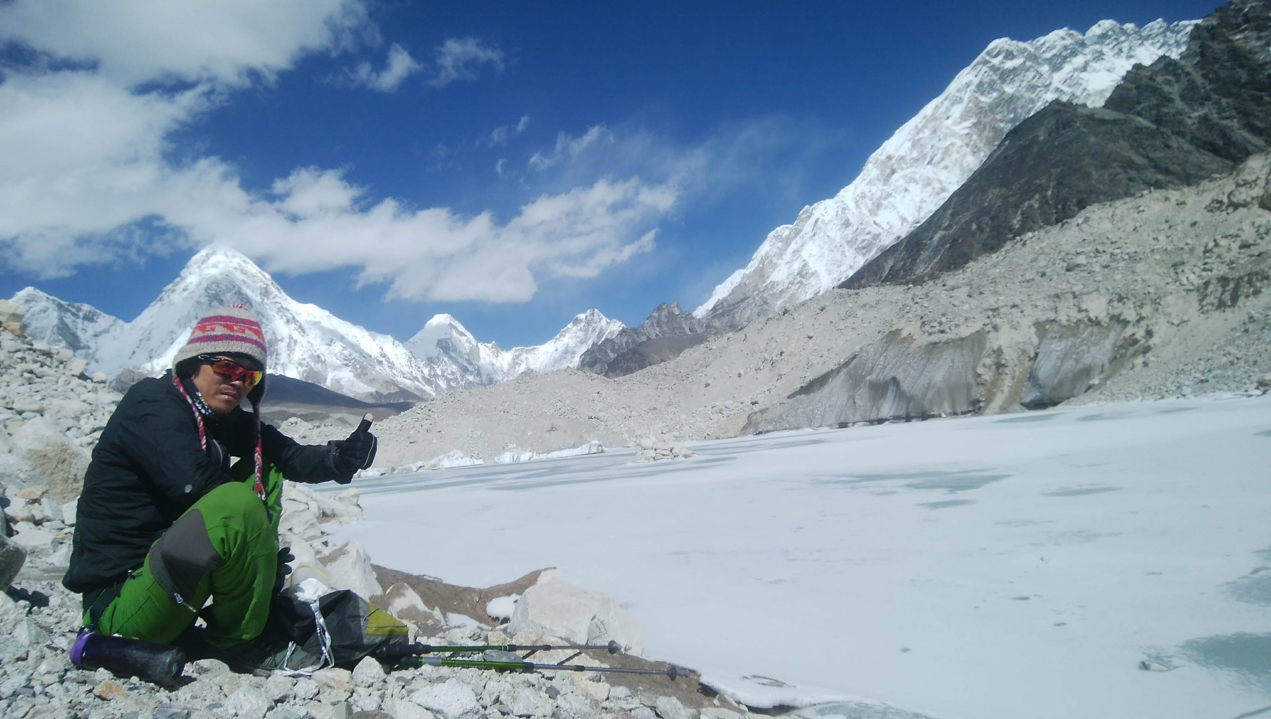 さて、時間もまだ早いので散歩がてらクーンブ氷河を渡ってみることにしました。