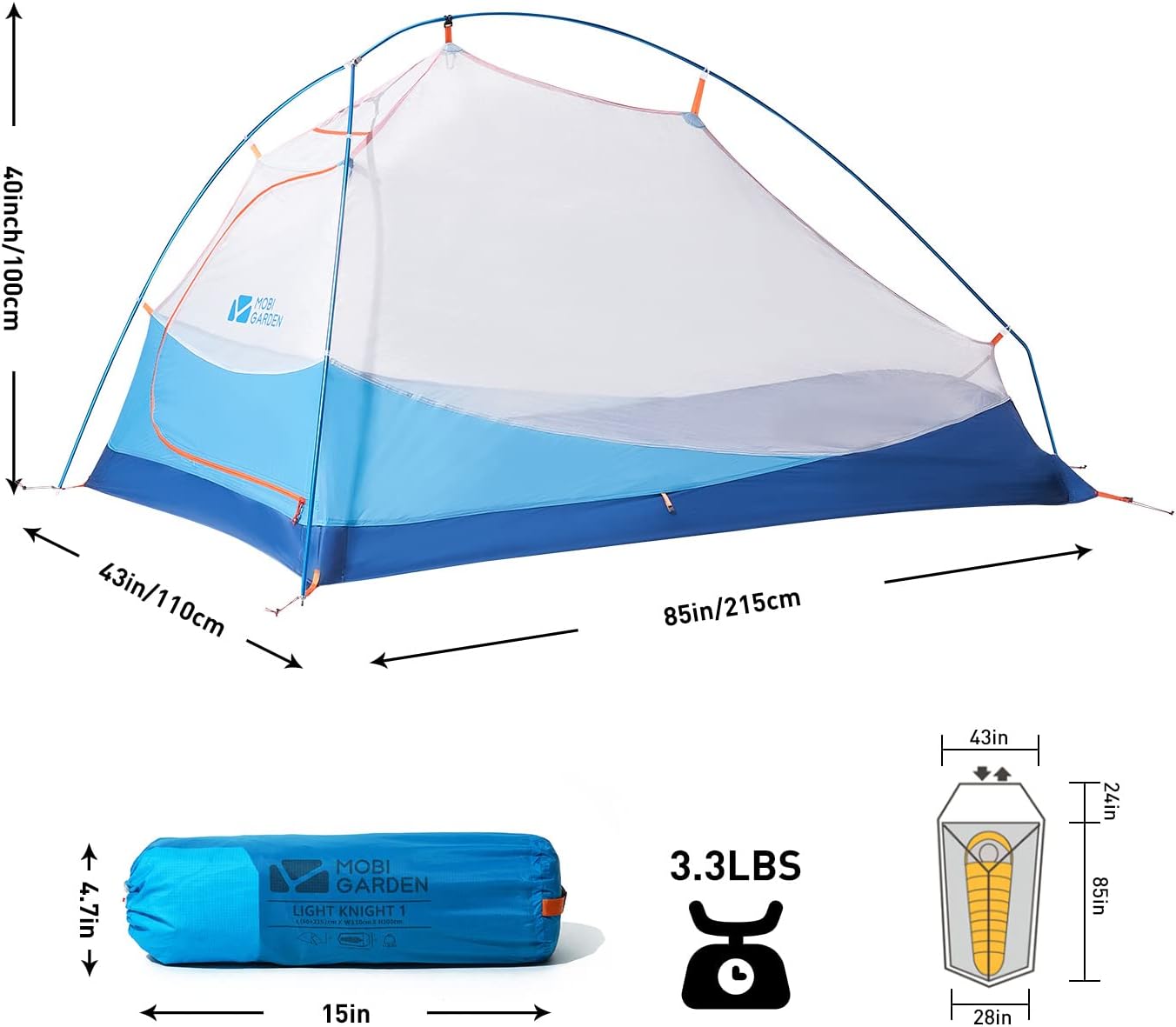 山岳1人用テント(MobiGardenLIGHTKNIGHT ul1)と寝袋(イスカ,アルファライト500x(最低温度0度)スリーピングマット(NEMOスイッチバックレギュラー)3点セットです。 24時間:8300円~