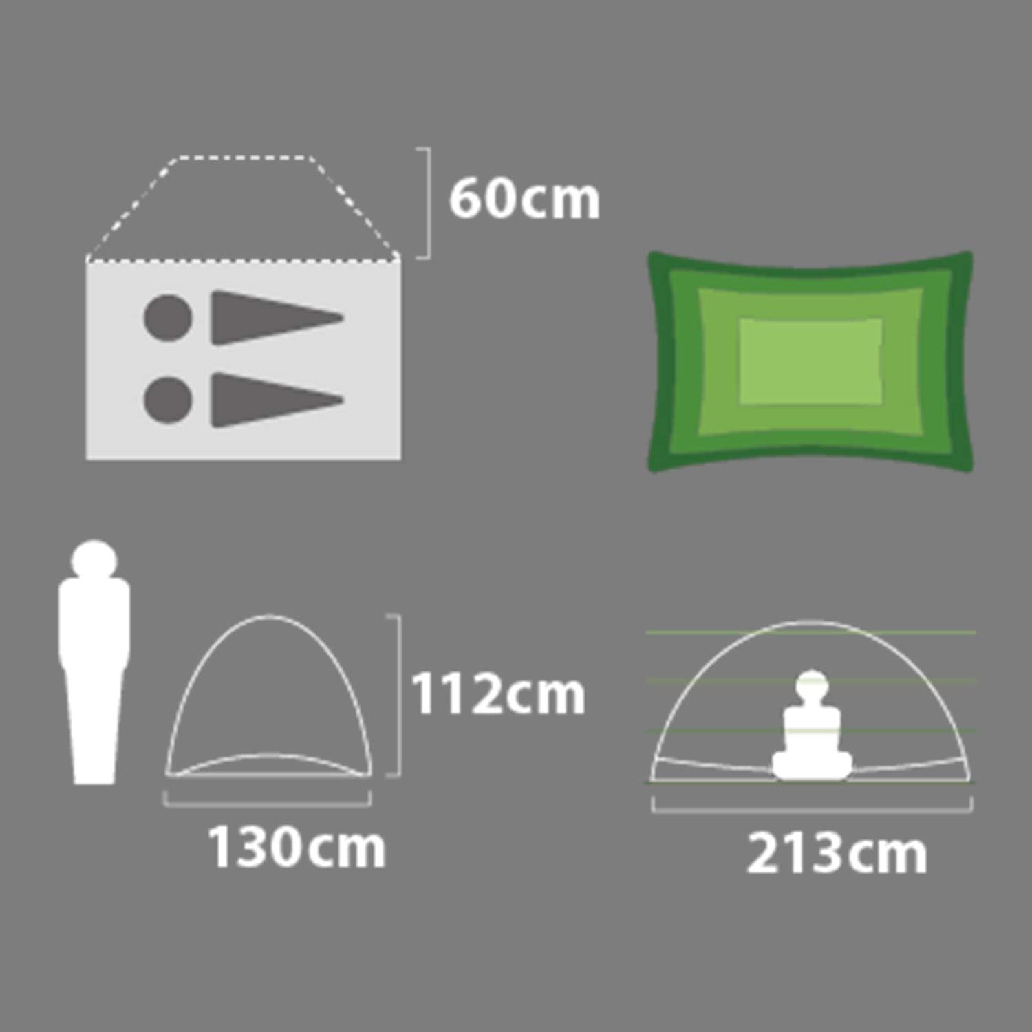 ◎ Total weight: 1890 g (main unit + accessories)◎SizeWhen set up: Overall width: 130 cm (72 cm)Overall length: 270 cm (including front room length 60 cm)Overall height: 105 cmWhen stored: Φ41 x 13 cm