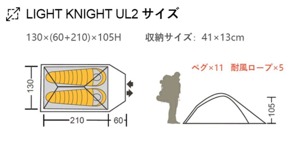 セット内容・2人用テントMobiGardenLIGHTKNIGHT ul2・寝袋(イスカ アルファライト500x(最低温度0度))・スリーピングマットNEMOスイッチバックレギュラー