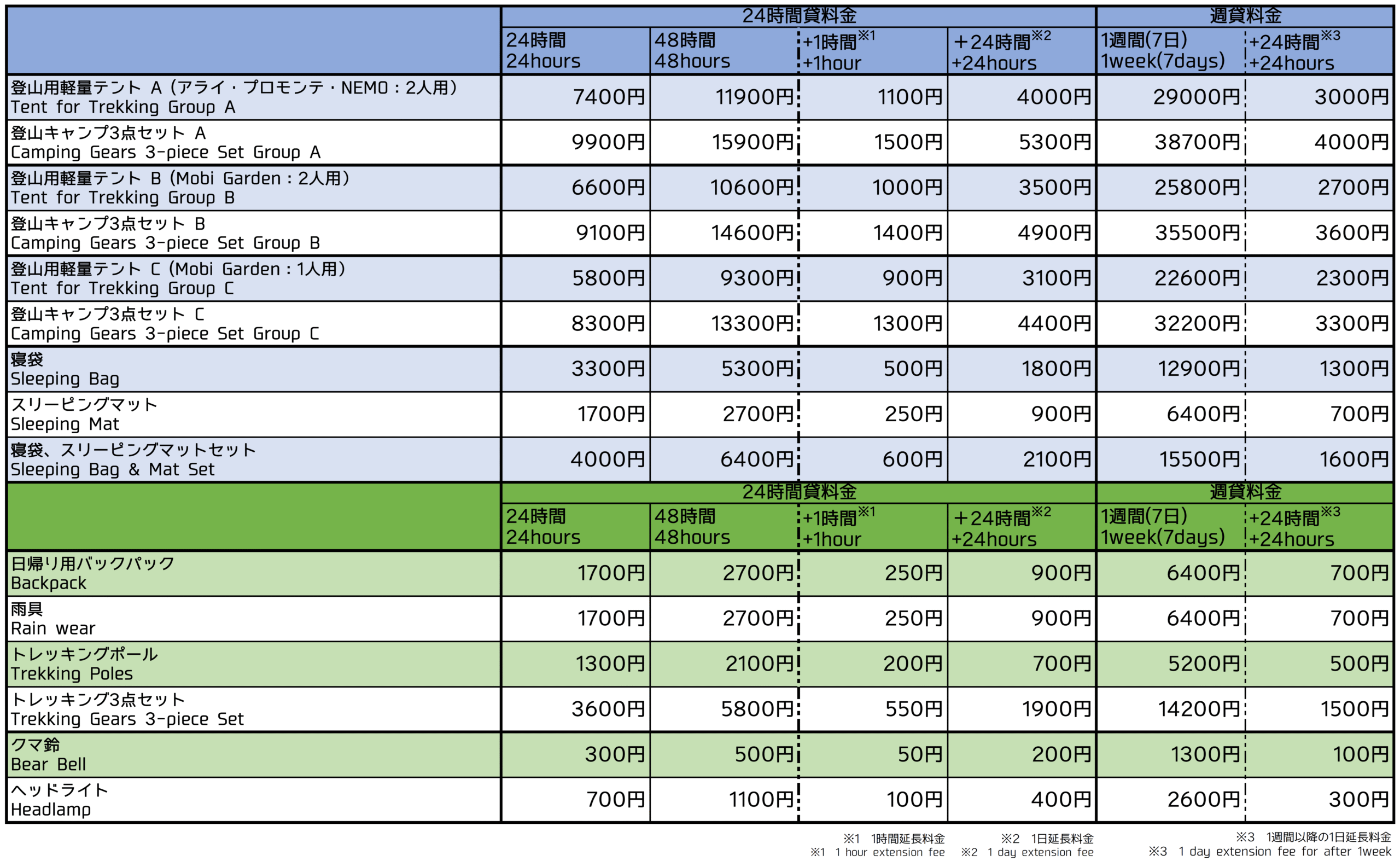 ◎料金24時間料金・・・・・・・・・・・・・・・・ 1300円1時間延長につき 200円48時間料金・・・・・・・・・・・・・・・・ 2100円1時間延長につき 200円、24時間延長につき 700円1週間料金・・・・・・・・・・・・・・・・ ・5200円24時間延長につき 500円