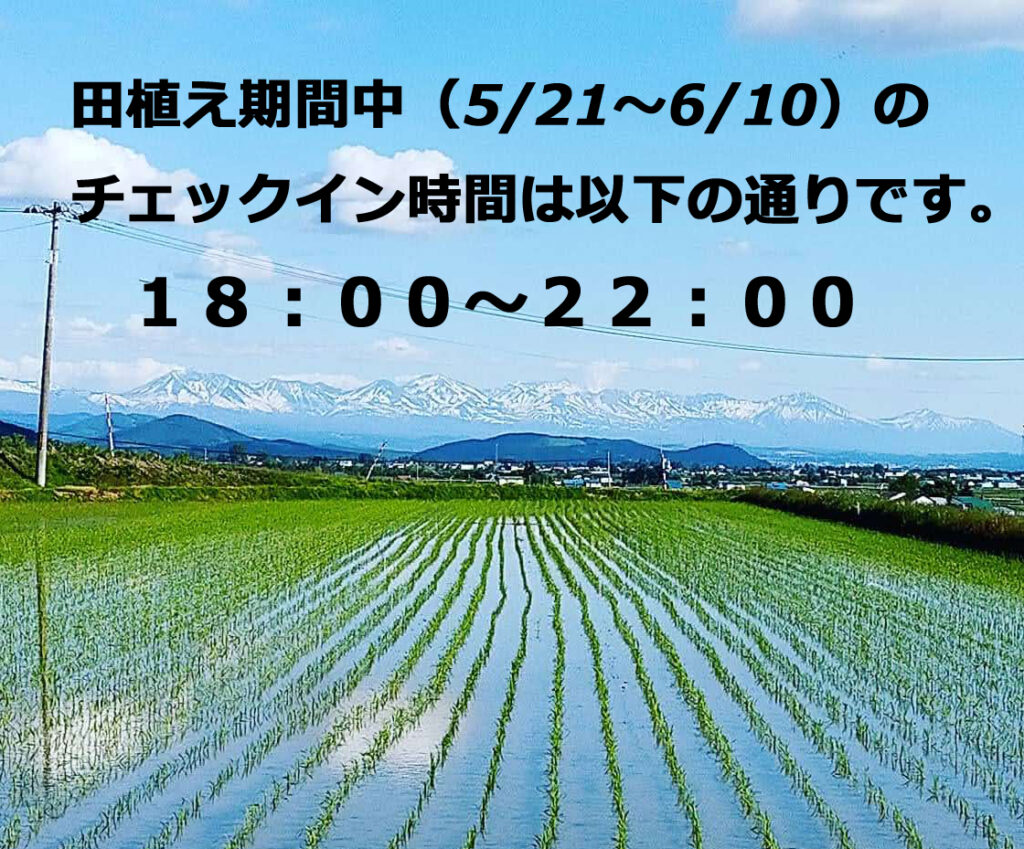 田植え期間中のチェックイン時間について